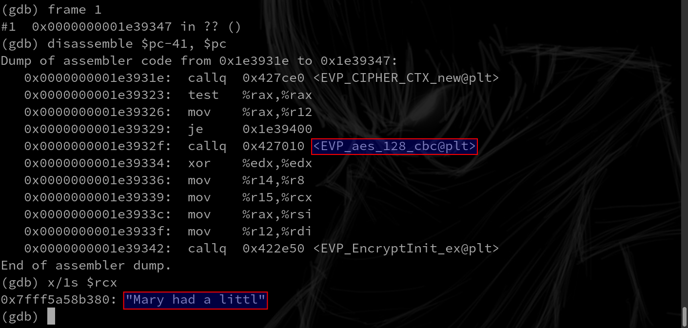 Nous posons un point d’arrêt sur EVP_EncryptInit_ex.